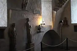 Les armoiries des familles Sture et Tott liées à l'histoire du château sont peintes sur les murs de l'église[4].