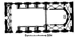 Extérieur de l'église avec le collège au fond en prolongement | |