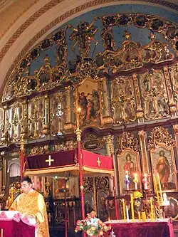 L'iconostase a été réalisée par Franz Zimmann de Bela Crkva. La plupart des peintures sont dues à Jovan Popović, notamment celles de l'iconostase, du trône de la Mère de Dieu et du trône de l'archiprêtre ; elles ont été réalisées en 1858–1859[1]. Après l'installation de la nouvelle iconostase, l'ancienne iconostase provenant de l'église de 1776 a été vendue à l'église orthodoxe roumaine du Saint-Esprit d'Ečka[2] ; elle est aujourd'hui inscrite sur la liste des monuments culturels de grande importance de la république de Serbie (identifiant no SK 1103)[3],[4].