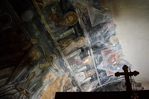 L'intérieur abrite des fresques représentant des figures en pied de saints archevêques, de saints guerriers et d'autres saints, comme saint Sava et son père saint Siméon le Myroblite ainsi que de grandes fêtes liturgiques dans la nef et des scènes de la vie de sainte Parascève dans le narthex[3]. L'ensemble est considéré comme ayant une valeur stylistique et iconographique incontestable[3].