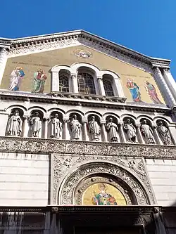 Elle a été bâtie en 1869 en style byzantin par l'architecte Carlo Maciacchini. La construction se caractérise pour un dôme bleu central plus haut que les quatre clochers couronnés par des dômes bleus plus petits. Les murs extérieurs sont embellis de grandes mosaïques décoratives.