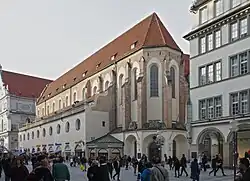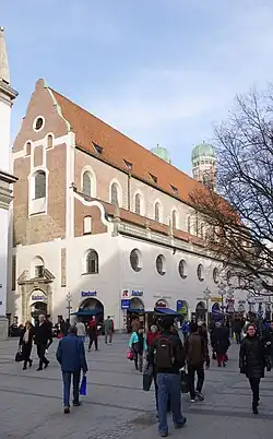 La basilique gothique en brique a été la première église de Munich à être redessinée en style baroque de 1618 à 1621 par Veit Schmidt, probablement selon les plans de Hans Krumpper. Pendant la plus longue partie de son existence, l'église faisait partie du monastère des Augustins, qui est maintenant le bâtiment de service du siège de la police de Munich.