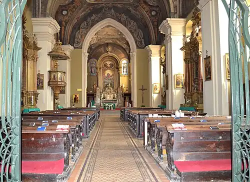Le sanctuaire est en style gothique. La partie la plus ancienne de l'église est la nef de style roman. À l'origine, il y avait des fenêtres étroites, qui ont pris leur forme actuelle lors de la reconstruction baroque. La tour est construite du côté nord de la nef.