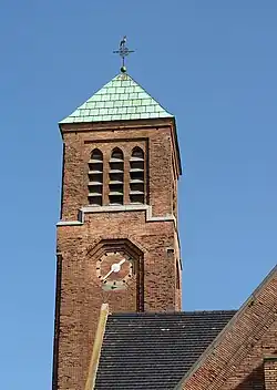 Avec son haut clocher, elle forme le centre du quartier du Nouveau-Monde. L'église a été construite en 1939-1940 en briques jaunes provenant de la région de Dixmude, sur un projet de Maurice Dujardin.
