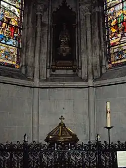 Un maître-autel en marbre de carrare, bronze et pierres semi-précieuses, sculpté par Edouard Buisine sur les plans de Jules Batigny, occupe le fond du chœur. Il a été présenté à l'Exposition Universelle de 1900[8]. Les grands candélabres qui entourent le maître-autel et les girandoles qui ornent les piliers ont été réalisés par la maison Placide Poussielgue-Rusand.