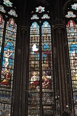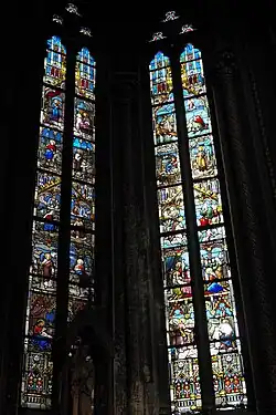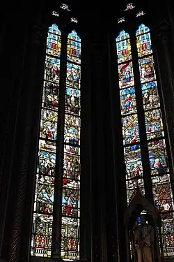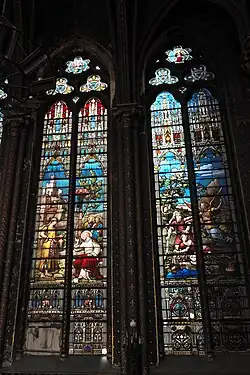 Dans la chapelle absidale dite « chapelle du vœu », offerte par la famille Brame-Wallaert et inaugurée en , on peut admirer un ensemble de onze vitraux classés monuments historiques, exécutés dans l'Atelier Lorin à Chartres d'après les dessins du peintre valenciennois Charles Crauk. Ils représentent différentes scène de l'Ancien et du Nouveau Testament[1].