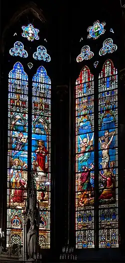 - 1 2 « 11 verrières : le Sacrifice d'Abraham, Moïse faisant jaillir une source, la Samaritaine au puits, la Multiplication des pains, sainte Madeleine, saint Jean, le Coup de lance, Apparition à saint Thomas, Consécration du Sacré-Coeur à la France », notice no PM59000906, sur la plateforme ouverte du patrimoine, base Palissy, ministère français de la Culture