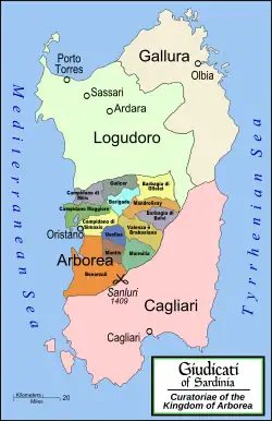 Un premier traité de paix, signé en 1386 entre l’Arborée et l’Aragon, n’est pas respecté. Le second fils d'Éléonore, Mariano V d'Arborée, est élu juge en 1387 à la mort de son frère aîné. Un nouveau traité Ultima Pax Sardiniae[7] est signé à Cagliari le 24 janvier 1388 reprenant intégralement le texte de l’accord précédent. Les Sardes, qui doivent payer des réparations et restituer les territoires conquis, se retrouvent dans la situation d'avant 1353. Brancaleone Doria est libéré le . Éléonore reprend les hostilités contre le roi Jean Ier d'Aragon dès 1392. Les territoires perdus sont intégralement reconquis. Son alliance avec la république de Gênes permet au judicat de garder son indépendance vis-à-vis de l’Aragon jusqu’à la bataille de Sanluri perdue le 30 juin 1409 par Guillaume II de Narbonne face à Martin Ier de Sicile fils du roi Martin Ier d'Aragon, marquant la fin du judicat.