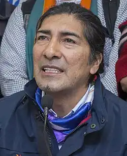 L'avocat Yaku Pérez, figure de Pachakutik, la branche politique de la puissante Confédération des nationalités indigènes de l'Équateur (Conaie), se présente sur un programme insistant en particulier sur la protection de l'environnement. Militant écologiste engagé dans les luttes pour le droit à l’eau, opposant à un modèle économique reposant sur l’extractivisme, il avait été l'un des meneurs des manifestations anti-austérité d’octobre 2019[9]. Le politologue Matthieu Le Quang souligne que le candidat a un discours « post-politique, qui nie tout type de conflit » permettant de dépasser la polarisation traditionnelle et de séduire un spectre d’électeurs bien plus large que le mouvement indigène. « Il a su aussi parler aux élites économiques blanches en reprenant, par exemple, leur revendication pour l’élimination des taxes sur la sortie des dollars ou de devises, une revendication très à droite », ou en déclarant « qu’il n’y a plus de racisme en Équateur, ce qui est une façon de nier les discriminations »[12].