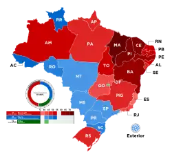 Dilma Rousseff arrive en tête dans dix-huit États, principalement dans le Nord et l'Est du pays. Elle obtient la majorité absolue dans dix d'entre eux[7] et réalise son meilleur score (70,65 %) dans l'État de Maranhão[7]. En revanche, elle obtient son plus mauvais résultat (23,92 %) dans l'État d'Acre[7].