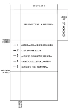 | Eduardo Frei Montalva | Parti démocrate-chrétien du Chili | 255 769 | 20,70 | |