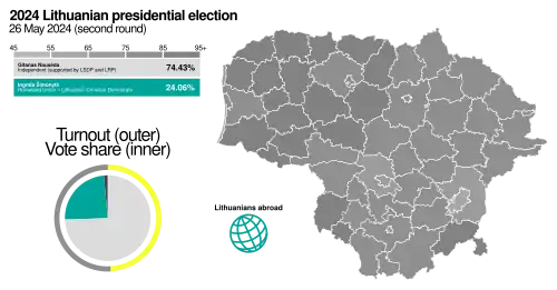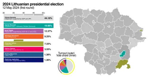 - ↑ https://www.vrk.lt/2024-prezidento/rezultatai?srcUrl=/rinkimai/1504/2/2068/rezultatai/lt/rezultataiPreLietuvoje.html