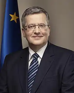 Le , le président de la république de Pologne en exercice, le conservateur Lech Kaczyński, meurt lors d'un accident d'avion, à Smolensk, en Russie. Une élection présidentielle anticipée[1] est alors convoquée par le président de la Diète, Bronisław Komorowski, chargé par la Constitution d'assurer l'intérim de la présidence de la République et candidat du parti libéral de la Plate-forme civique (PO), lequel était opposé à la politique menée par le président Kaczyński. Quelques semaines plus tard, l'ancien président du Conseil des ministres, Jarosław Kaczyński, frère jumeau du défunt chef de l'État, annonçait sa candidature. Le , ces deux candidats sont qualifiés pour le second tour de l'élection, mais doivent, pour que l'un d'eux soit élu, compter avec les voix de Grzegorz Napieralski, candidat de l'Alliance de la gauche démocratique (SLD), qui choisit de se rallier à la candidature de Komorowski, lequel est confortablement élu président de la République avec un peu plus de 53 % des voix[2],[3]. Pendant sa campagne électorale, il avait promis de soutenir la politique menée par le gouvernement libéral de centre droit de Donald Tusk et, malgré son manque de charisme et une hausse progressive des chances de Kaczyński, le candidat de la majorité parlementaire était le favori des sondages tout au long de la campagne présidentielle.