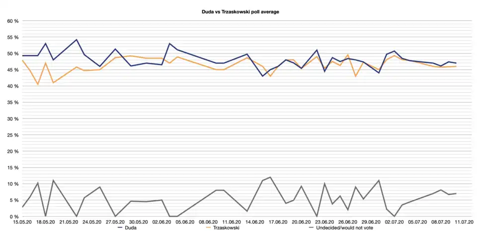 Au soir du premier tour, marqué par une forte hausse de la participation malgré la crise sanitaire, Andrzej Duda et le maire de Varsovie Rafał Trzaskowski, issu de Plate-forme civique, se qualifient pour le second tour. Duda l'emporte finalement avec un peu plus de 51 % des suffrages exprimés dans un contexte de nouvelle hausse de la participation. Cette élection présidentielle est alors la plus serrée de l'histoire polonaise.