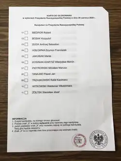 - 1 2 3 (pl) « Wybory Prezydenta Rzeczypospolitej Polskiej w 2020 r. », sur wybory.gov.pl (consulté le ).