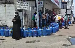 La crise économique sri-lankaise débute en 2021 sous la présidence de Gotabaya Rajapaksa. Le pays fait faillite et s'avère incapable de rembourser une dette de 83 milliards de dollars accumulée en raison d’une mauvaise gestion d'investissement dans de grands projets, d'une chute des revenus agricoles à la suite de la sécheresse de 2017, et d'une chute des revenus touristiques, secteur qui employait en 2020 25 % de la population, à la suite de la pandémie de Covid-19. En , le Sri Lanka annonce ne plus pouvoir payer sa dette extérieure, faisant donc défaut de 46 milliards de dollars[1],[2].