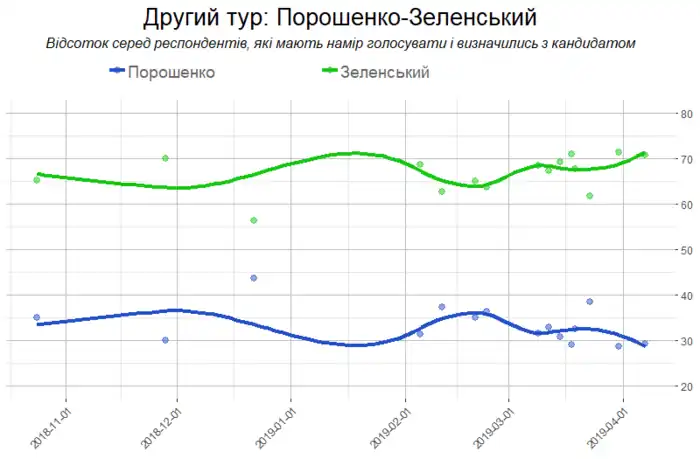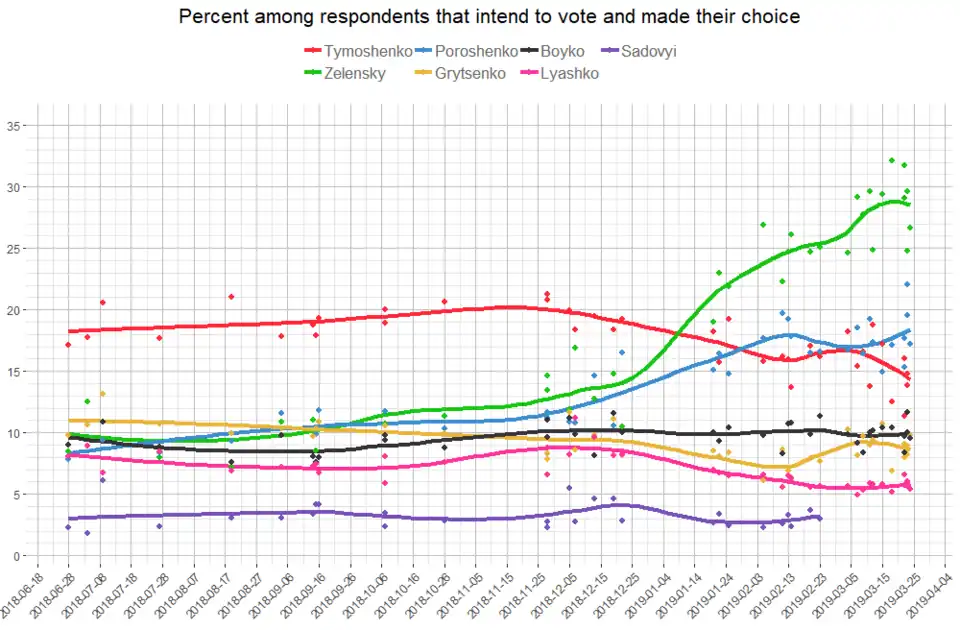 - ↑ (uk) « Моніторинг електоральних настроїв українців (22-27 березня 2019 року) », sur ratinggroup.ua, (consulté le ).