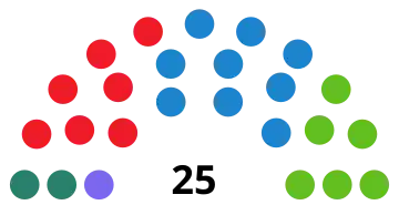 | 25 députés de l'Assemblée (majorité absolue : 13 députés) | ||||||||||||||