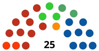 | 25 sièges du congrès étatique (Majorité absolue : 13 sièges) | ||||||||||||||