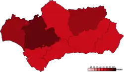| Parti socialiste ouvrier espagnol d'Andalousie (PSOE-A) | 2 260 545 | 50,36 | 61 | |||||||||||