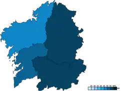 | PSdeG-PSOE[a] | 139 662 | 22,91 | 6 | 47 838 | 21,60 | 3 | 40 695 | 19,28 | 3 | 106 624 | 19,28 | 5 | |||||