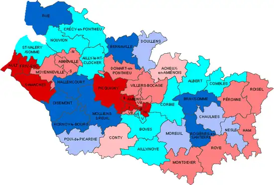 | Abbeville-Nord | Gilbert Mathon | PS | Abbeville-1 | Carole Bizet | UMP |