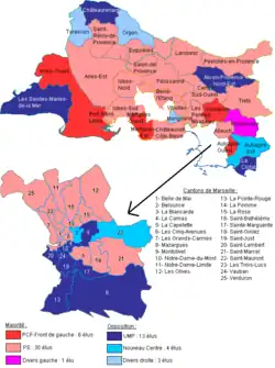 - ↑ Résultats dans le canton de Marseille-6 sur le site du ministère de l'Intérieur.