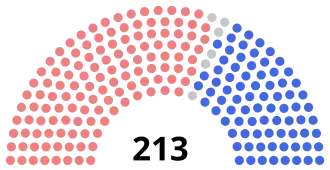| Total sièges | 6 | 4 | 7 | 92 | 65 | 14 | 20 | 5 | 213 | ||