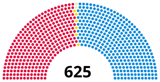 | 625 sièges de la Chambre des communes (Majorité absolue : 313 sièges) | ||||||||||||||