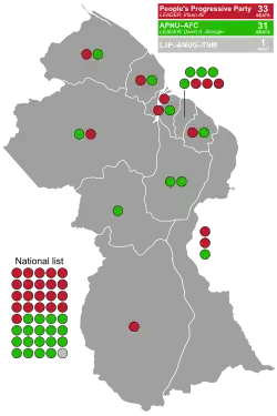 | Coalition APNU-AFC | 237 329 | 49,85 | 33 | |||