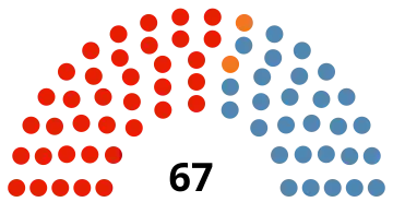 | 67 sièges de la Chambre des représentants (Majorité absolue : 34 sièges) | ||||||||||||||