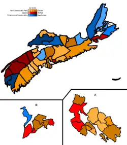 L'élection a été déclenchée après que le gouvernement minoritaire du Parti progressiste-conservateur de la Nouvelle-Écosse (droite) eut été défait sur une question financière lors d'un vote de la Chambre d'assemblée[1] le .