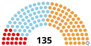 | 135 sièges de la chambre de l'assemblée (Majorité absolue : 68 sièges) | ||||||||||||||
