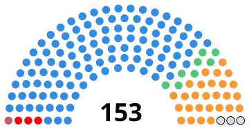 | 150 sièges de la chambre de l'assemblée (Majorité absolue : 76 sièges) | ||||||||||||||