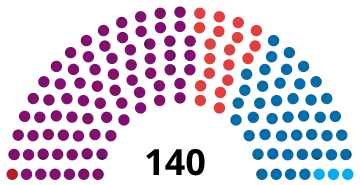 | 140 députés de l'Assemblée (Majorité absolue : 71 députés) | ||||||||||||||