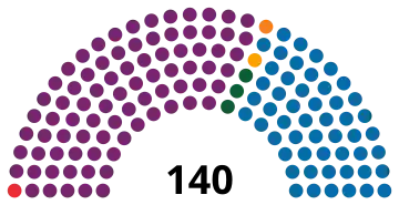 | 140 députés de l'Assemblée (Majorité absolue : 71 députés) | ||||||||||||||