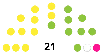 | 21 sièges des États d'Aruba (majorité absolue : 11 sièges) | ||||||||||||||