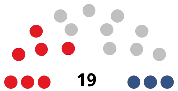 | 19 sièges à l'Assemblée législative (majorité absolue : 10 sièges) | ||||||||||||||