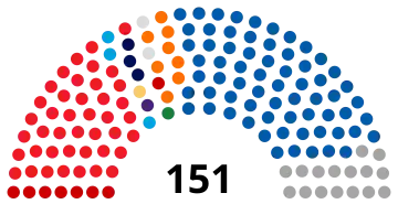 | 151 sièges du Parlement (Majorité absolue : 76 sièges) | ||||||||||||||
