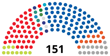 | 151 sièges du Parlement (Majorité absolue : 76 sièges) | ||||||||||||||