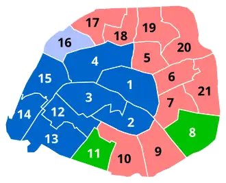 L'érosion de l'électorat de droite à Paris amorcé lors des municipales de 1995 se confirme (même si le rapport de force au premier tour est plus favorable à la droite qu'en 1997) et la gauche est en mesure de conquérir 3 nouveaux sièges sur la droite (deux gains pour Les Verts, un pour le PS plus un autre siège conquis sur le Mouvement des citoyens de Jean-Pierre Chevènement ). La gauche devient ainsi majoritaire en nombre de sièges à Paris pour la première fois sous la Ve république (situation qui perdure jusqu'en 2017 )[ 2] .
