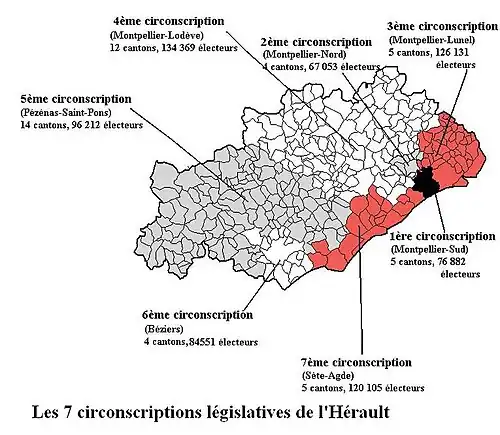 1re circonscription cantons de : Nîmes-1 - Nîmes-3 - Nîmes-4 - Nîmes-5 - Nîmes-6 - La Vistrenque.