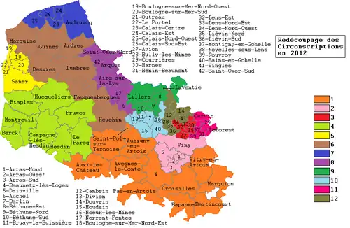 1 2 3 4 5 6 7 8 9 10 11 12 13 14 15 16 17 18 19 « Politiquemania - Pas-de-Calais : les candidatures aux élections législatives de 2012 », sur www.politiquemania.com (consulté le 11 janvier 2025 ) .