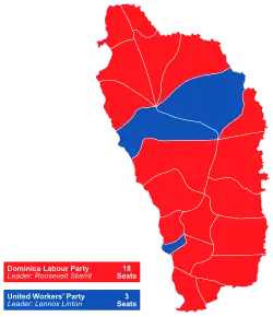Le parti travailliste remporte les élections avec une majorité élargie totalisant 18 sièges sur les 21 directement élus. Roosevelt Skerrit se maintient au poste de Premier ministre.