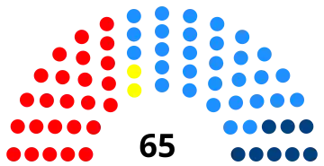 | 65 sièges du Parlement national (majorité absolue : 33 sièges) | ||||||||||||||