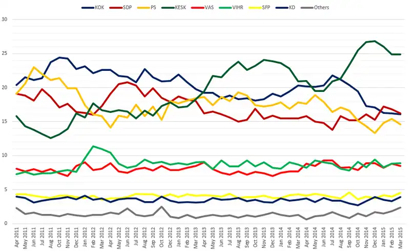 - ↑ (en) « FINLAND, February 2015. TNS Gallup poll », sur electograph.com,