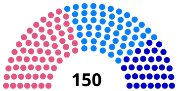 Au total, 741 députés sont appelés à siéger. 243, tirés au sort parmi les députés respectant plusieurs critères stricts, le principal étant d'avoir plus de 40 ans, sont appelés à former le Conseil des Anciens. Les autres rejoignent le Conseil des Cinq-Cents[12]. Les deux assemblées sont désormais destinées à être renouvelées par tiers chaque année et ont pour tâche immédiate de désigner les cinq Directeurs qui détiendront le pouvoir exécutif[15]. Rapidement, des groupes de députés se forment à l'extérieur des assemblées selon les idées défendues ; les partisans du Directoire se réunissent ainsi à l'hôtel de Noailles, tandis que la droite se réunit rue de Clichy, ses membres gagnant le surnom de clichyens[16].