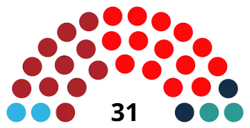 | 31 sièges du Inatsisartut (Majorité absolue : 16 sièges) | ||||||||||||||
