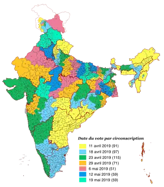 La Commission électorale indienne fixe le calendrier des élections. Celles-ci se déroulent en sept phases, du au .
