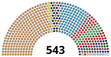 | 543 des sièges de la Lok Sabha (Majorité absolue : 272 sièges) | ||||||||||||||